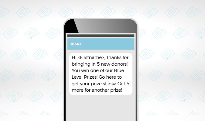 Engaging alumni via text messaging makes it easy to gamify fundraising. You can announce the program, send promotional texts to keep the game top of mind, feature winners and their ideas, offer special prizes, and share each alumnus’s personal status with them.