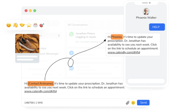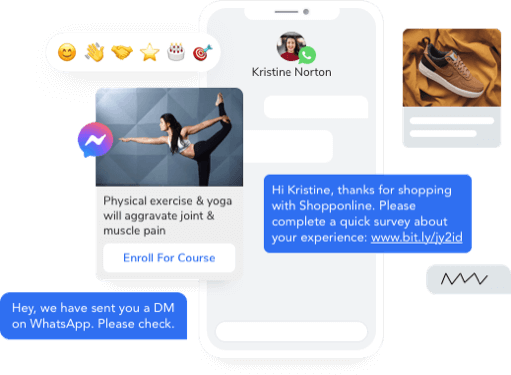 Make your digital conversations as fast and dynamic as in-person communication through text, WhatsApp, Facebook and more using SMS-Magic. No CRM needed!